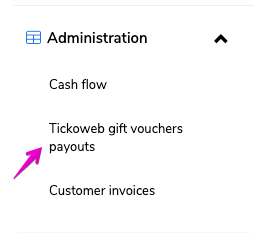 Aangezien de organisatie het geld van de gebruikte cadeaubonnen moet ontvangen via de organisatie die de bonnen heeft uitgegeven), kan ze via het administratie menu een uitbetaling aanvragen dmv een bestelbon te creëren:
